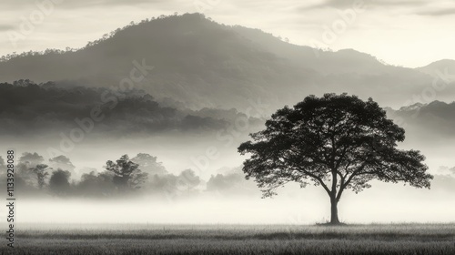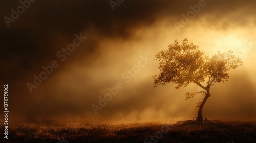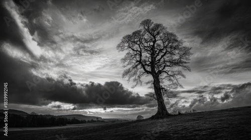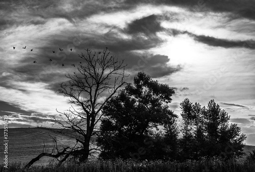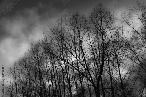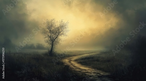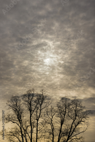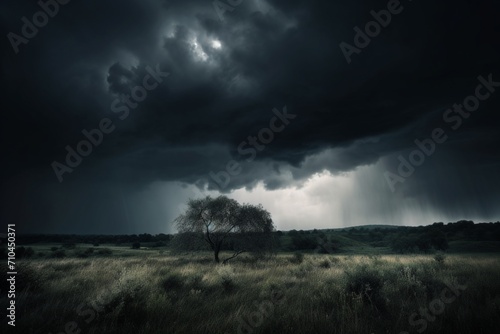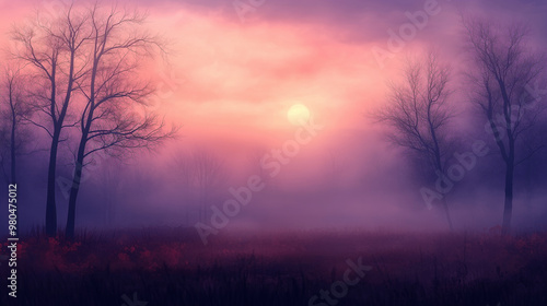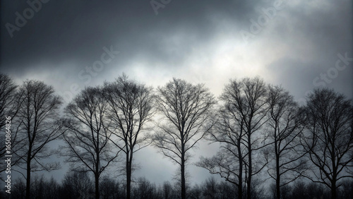 Spooky forest silhouette under moody sky, ominous atmosphere prevails generated by AI #609757708