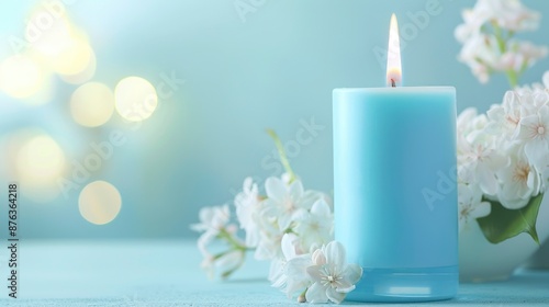 Pastel Blue Candle Adding A Touch Of Elegance. #876364218