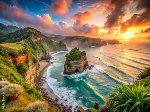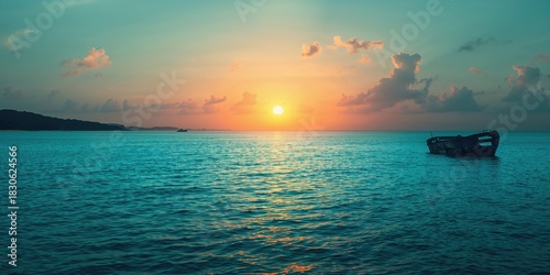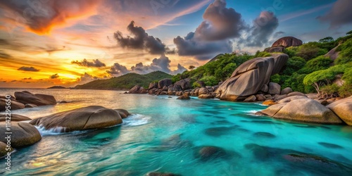 Vibrant sunset over Bamboo island of Thailand in summer holiday on tropical beach of Phi Phi region #191064388