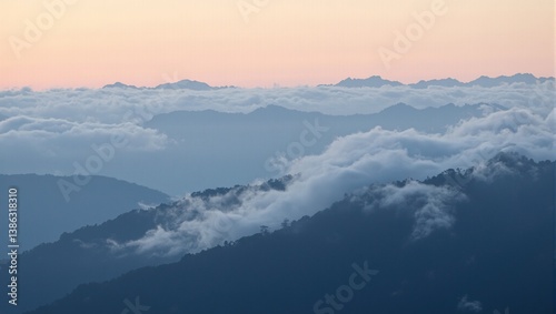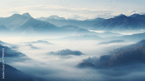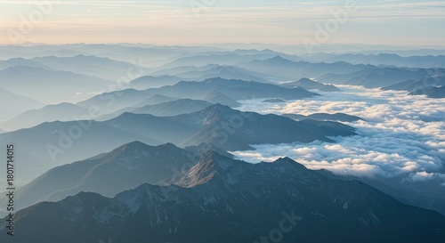 Foggy mountains from the sky #195097944