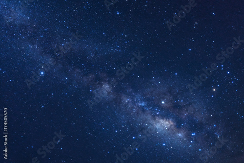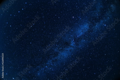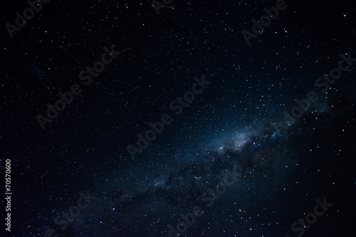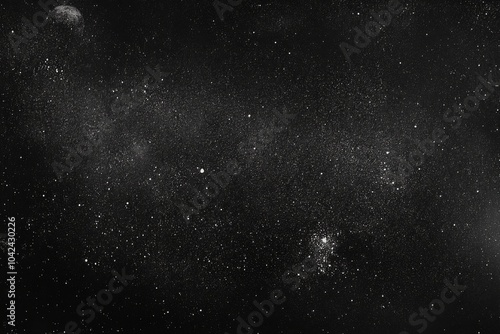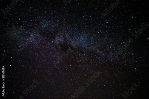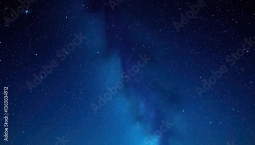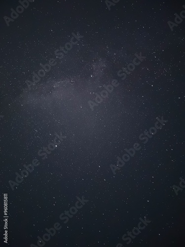 Bezchmurne niebo nocą. Nieboskłon pokrywają niezliczone gwiazdy, w centrum kadru widać jaśniejącą mgławicę. #647577741