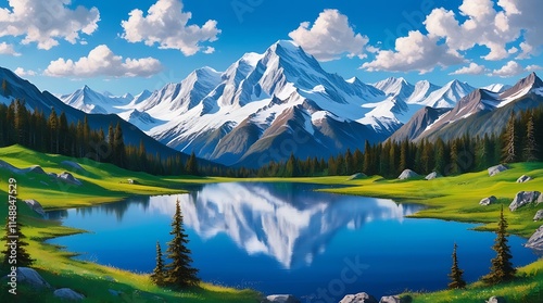 Digital landscape painting of mountain scenery #1148847529