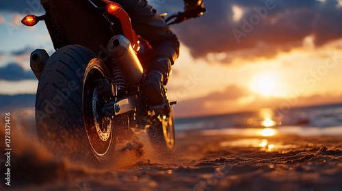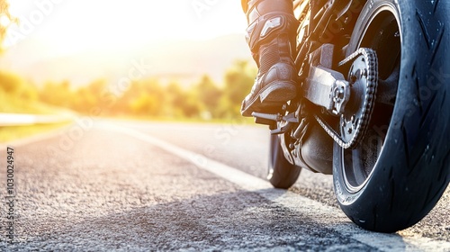 motorbike on the road riding. having fun riding the empty road on a motorcycle tour / journey #140842797
