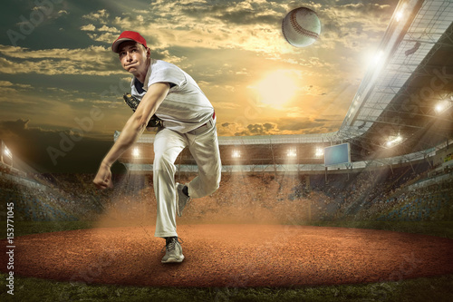 Baseball players in action on the stadium. #153771045