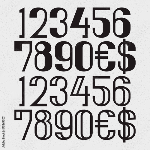 Two types of black numbers with dollar and euro symbols - full and hollow. #175569507