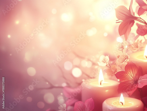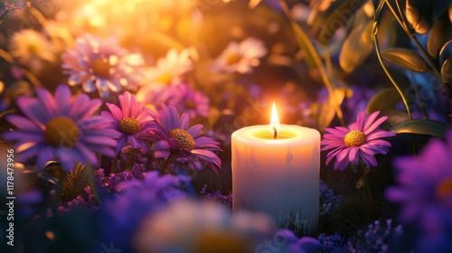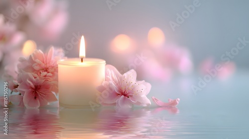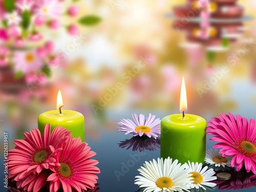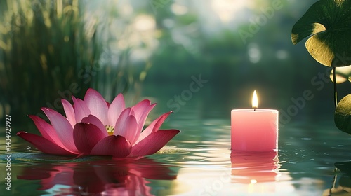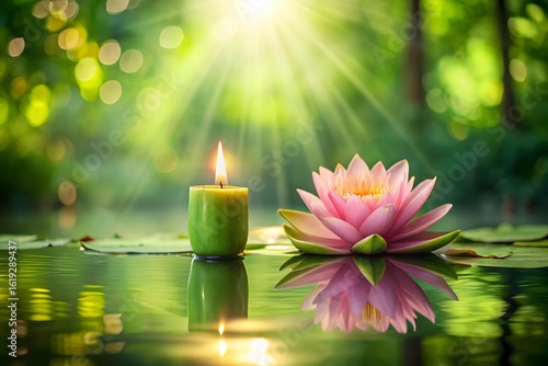 Spa - Serenity And Meditation With Candles And Waterlily In Zen Garden #115460389