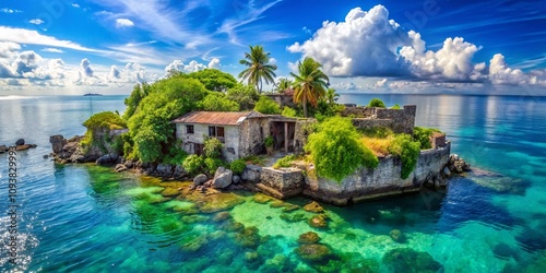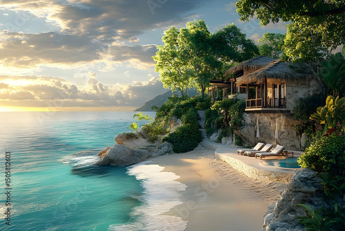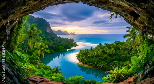 Sonnenuntergang auf einer einsamen Insel im Pazifik #138095911