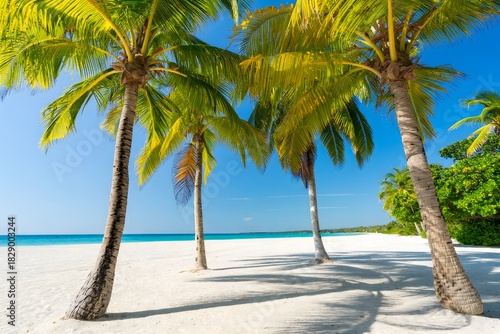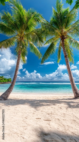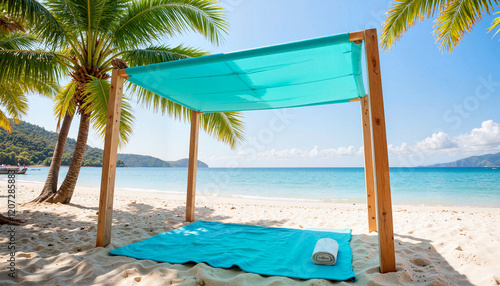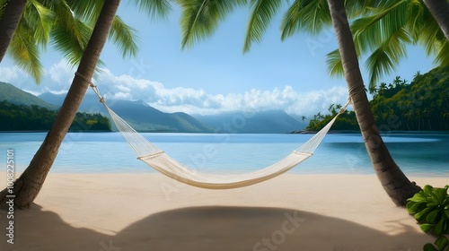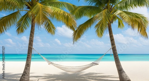 Urlaub am Palmenstrand mit Sonne und Hängematte #166715603